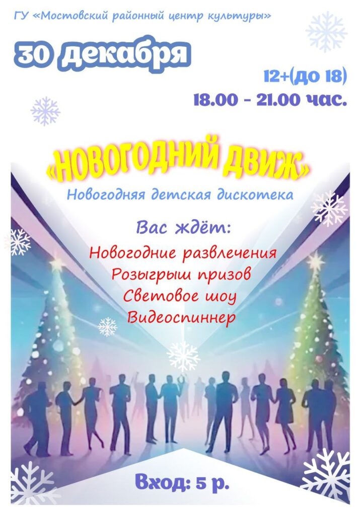 Приглашаем вас на новогоднюю дискотеку для молодёжи «Новогодний движ»!