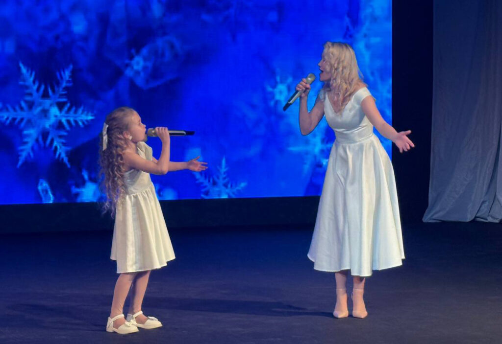 Мостовский район на сцене представили вокалистки образцовой эстрадной студии «Кампанелла» Мария и София Процко.