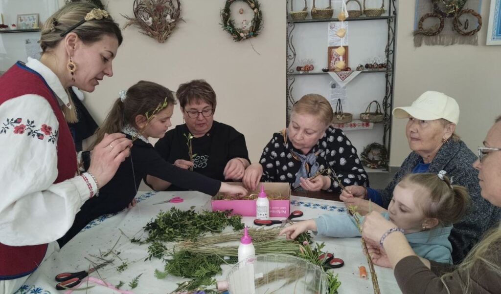 Гости мероприятия получили возможность не только познакомиться с творчеством мастеров, но и принять участие в мастер-классе по украшению вербочки, который провела опытный мастер Ольга Войтович.