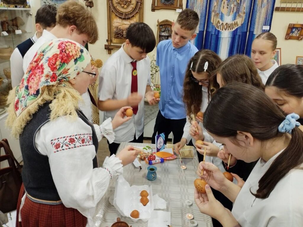 Падчас адкрыцця выставы прайшлі майстар-класы, дзе кожны жадаючы мог паспрабаваць свае сілы ў роспісе велікодных пісанак і спіральным пляценні з травы.
