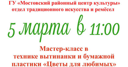 Аддзел традыцыйнага мастацтва і рамёстваў ДУ “Мастоўскі РЦК” актыўна далучыўся да тыдня беларускай жанчыны “Беларуская… Подробнее »“Дабрабытніца” сваімі рукамі